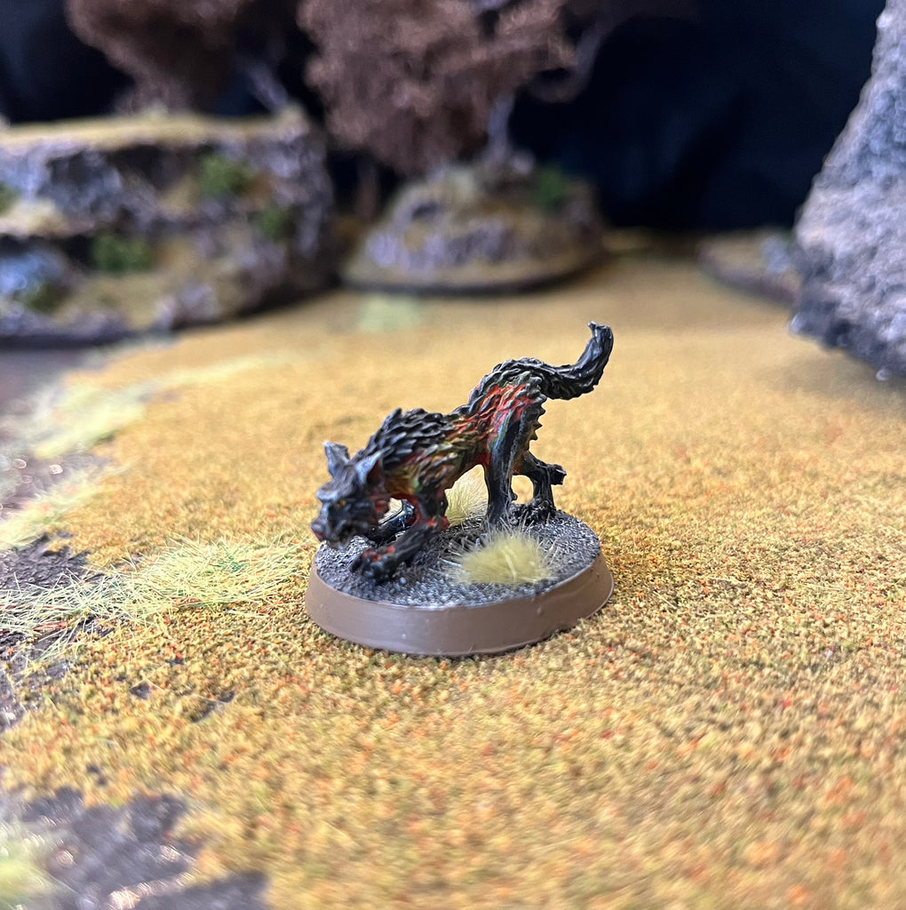 This miniature is a snarling hell hound ready to pounce on any adventurers who come close enough.